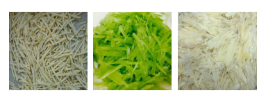 适用生姜、竹笋、萝卜、土豆、红薯、芋头、黄瓜等条状球状的瓜果快速切成丝或切片。